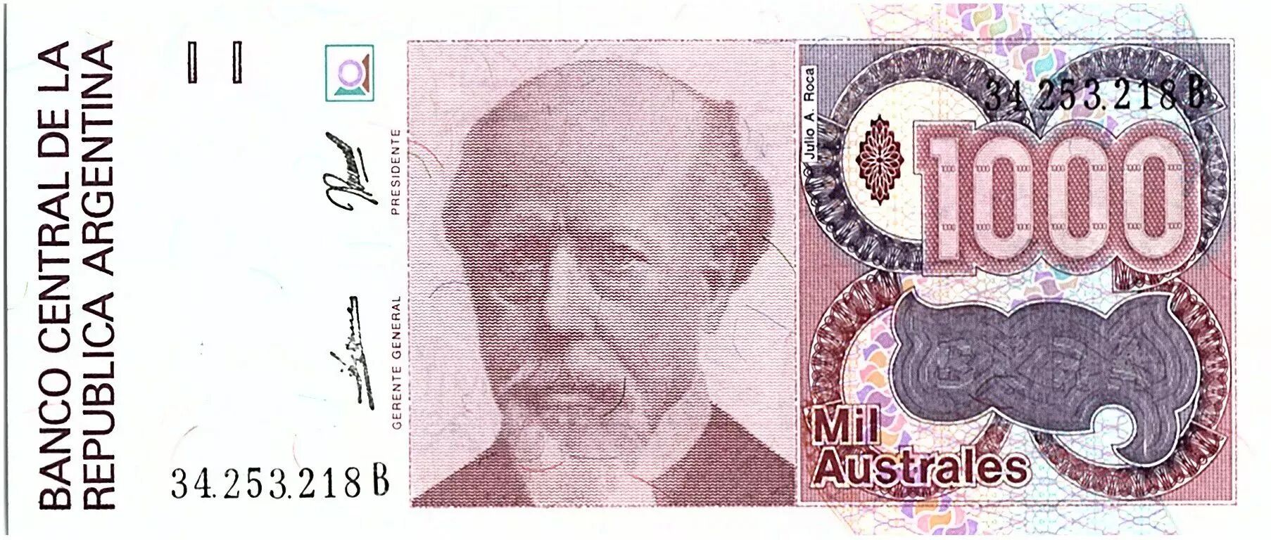 Banknote Argentina 1000 Austales, Julio A Roca - 1989