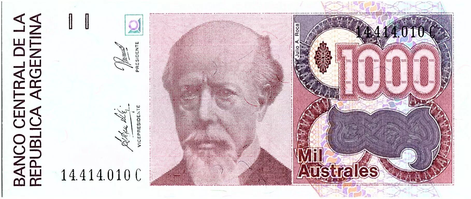 Banknote Argentina 1000 Austales, Julio A Roca - 1990