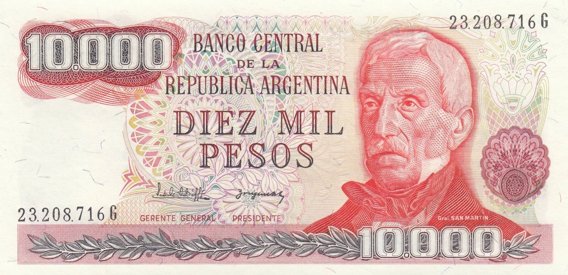 The 10000 Argentine Pesos banknote, issued in 1983.