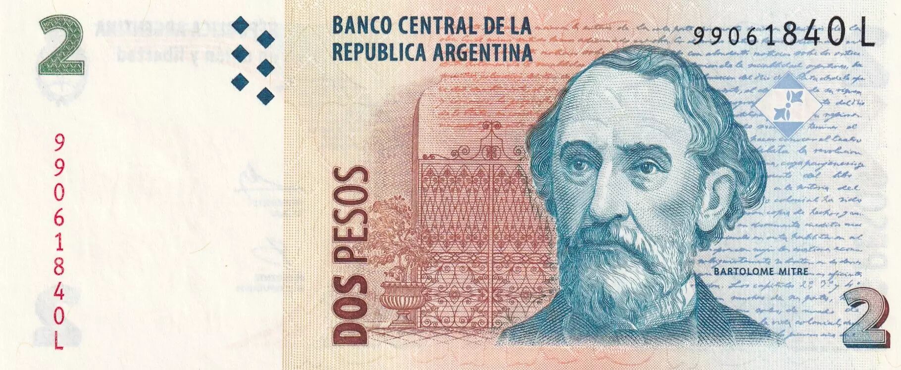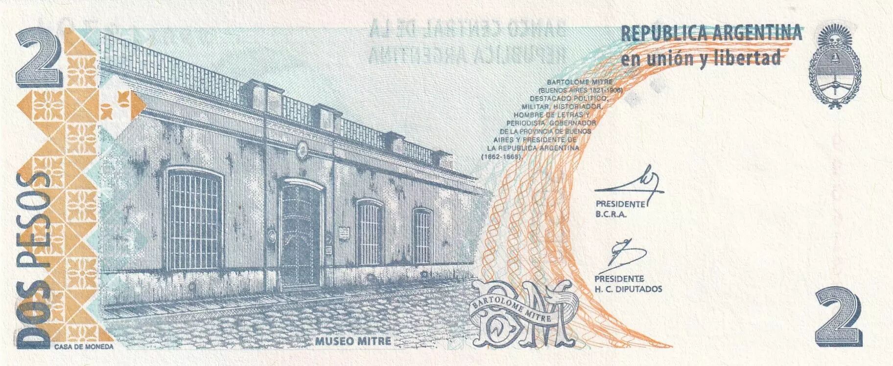 Banknote Argentina 2 Pesos Bartolomé Mitre - Museum - 2012 - Serial L