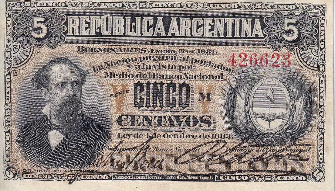 Home > > Argentina 5 Centavos - Dr. Nicolas Avellaneda - 1881 - P.5