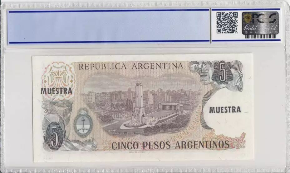 Home > World Banknotes > American Banknotes > Argentina > Argentina 5 Pesos 1983 - Specimen - PCGS 64 OPQ - P.312s