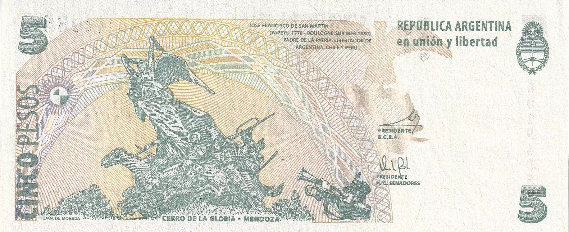 Banknote Argentina 5 Pesos - J. San Martin - Monument - ND (1996-2003) - Serial G - P.347
