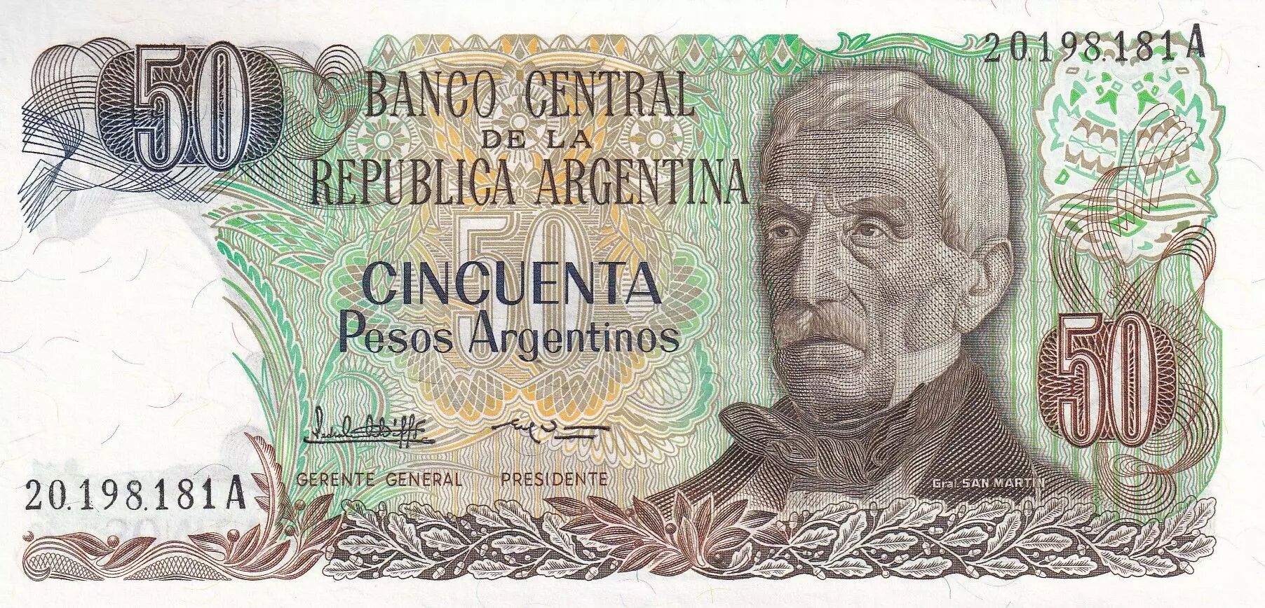 Banknote Argentina 50 Pesos - J. San Martin - Jujuy - ND (1983) - Serial A - P.314