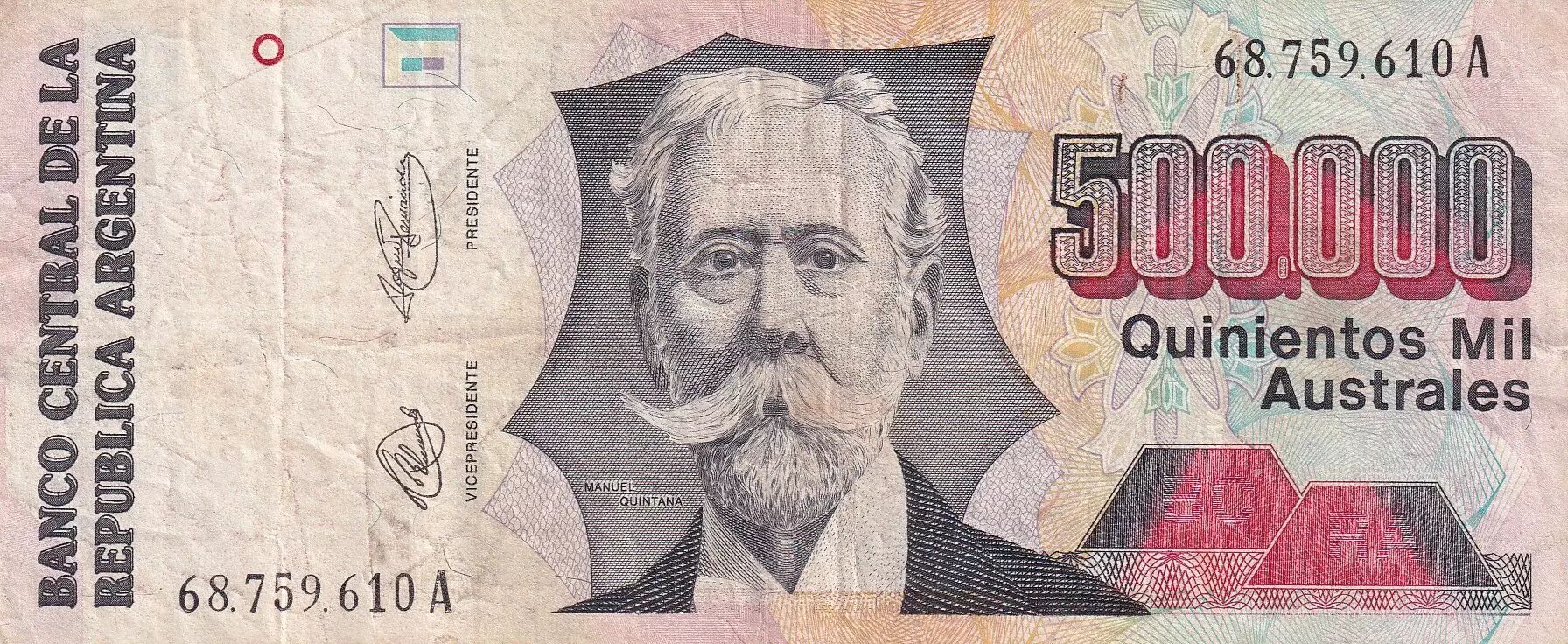 Banknote Argentina 500000 Australes, M. Manuel Quitana - 1991 - Serial A
