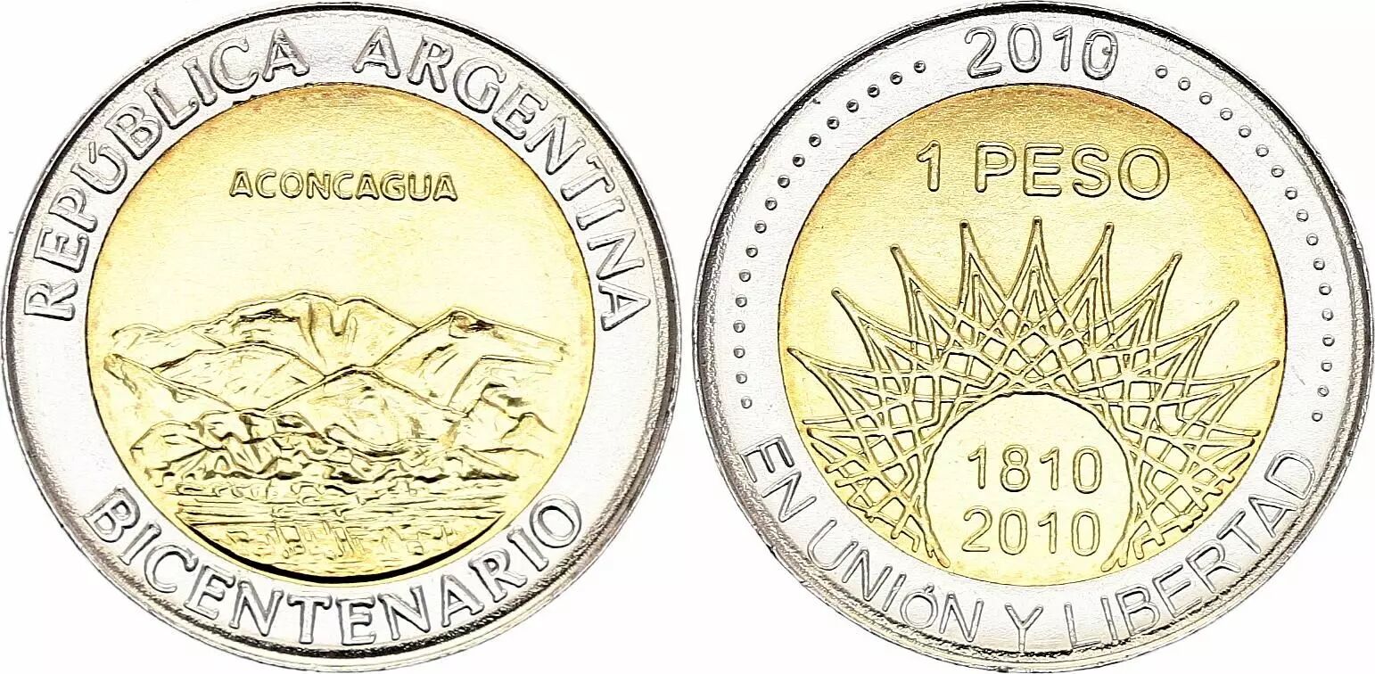 Accueil > Monnaies du monde > Monnaies d'Amérique > Argentine > Argentine 1 Peso - Cerro Aconcagua de Mendoza - Bicentenaire de la Révolution de Mai - 2010 - Bimétal