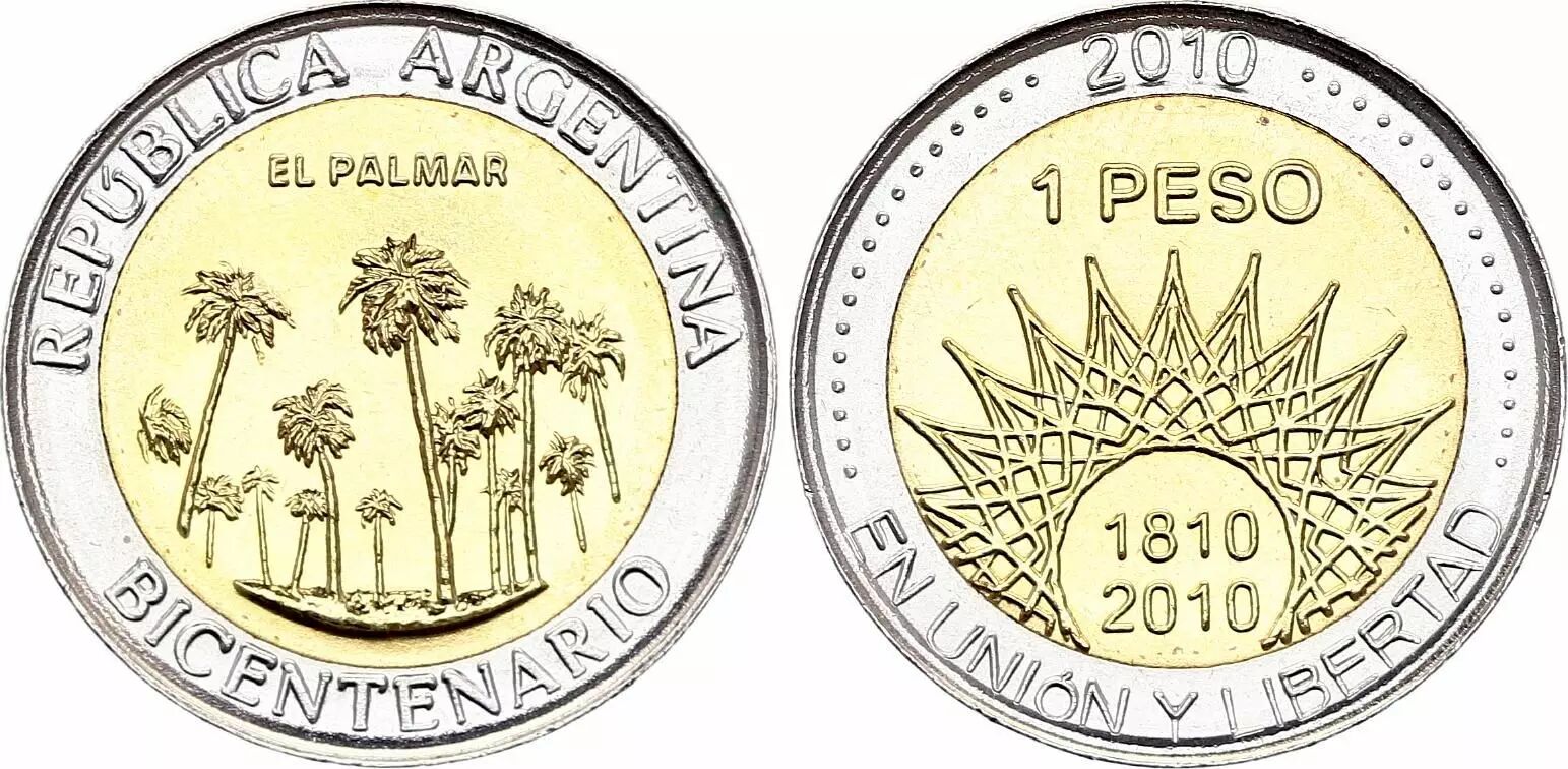 Pièce Argentine 1 Peso - El Palmar - Bicentenaire de la Révolution de Mai - 2010 - Bimétal