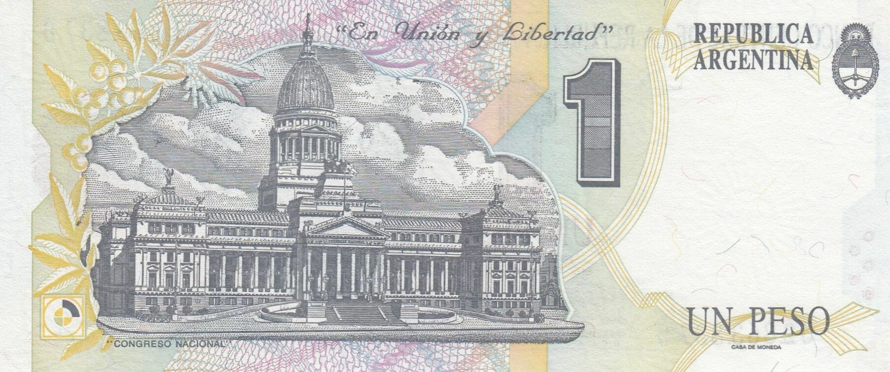 Le billet de 1 peso argentin, émis par la Banque Centrale, date de l'année 1993 et appartient à la Série D.