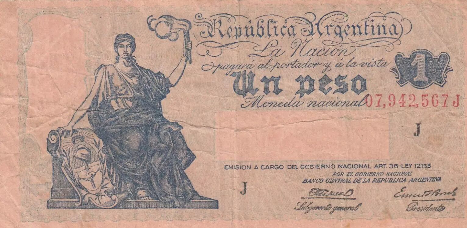 Billet Argentine 1 Peso - République d'Argentine - 1945 - Série J