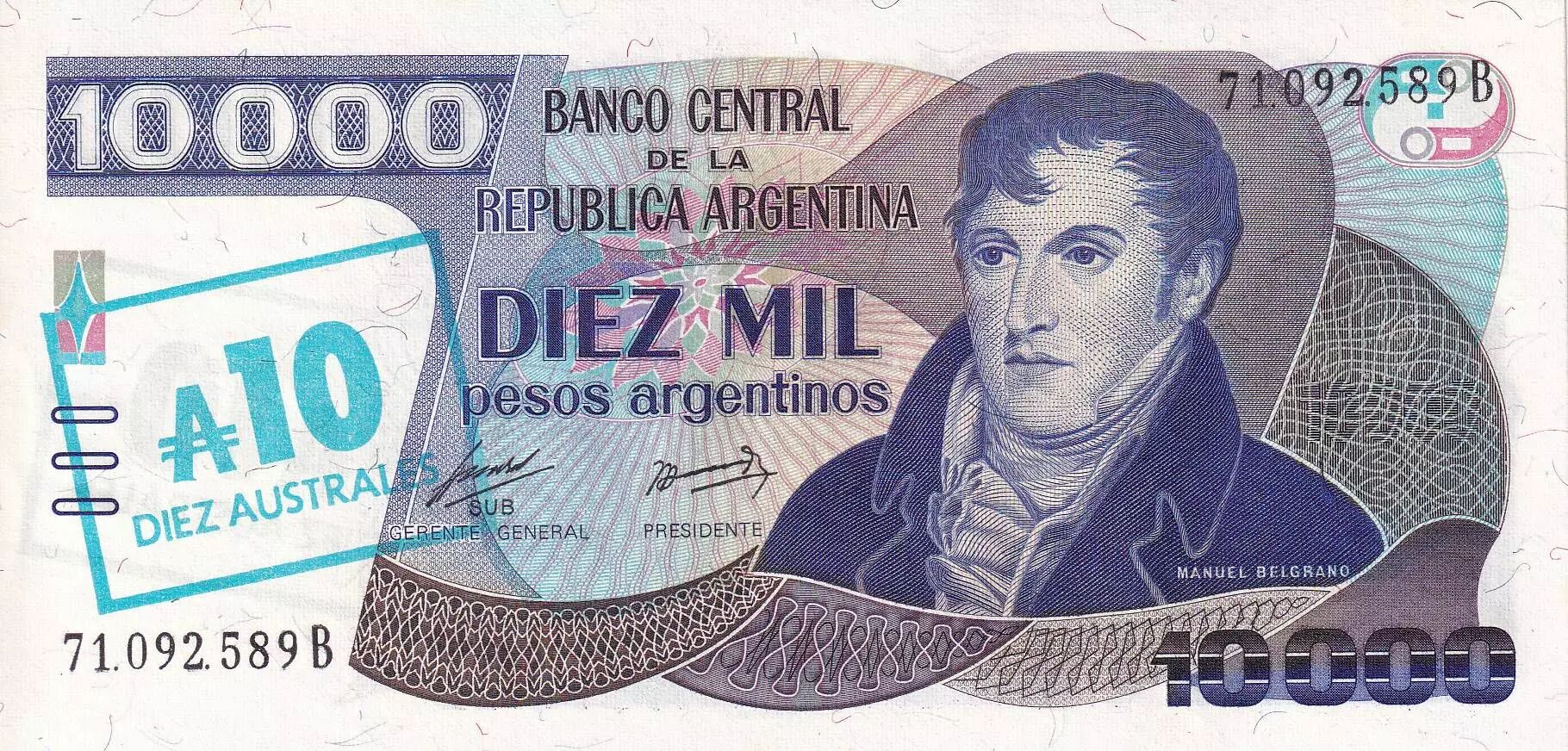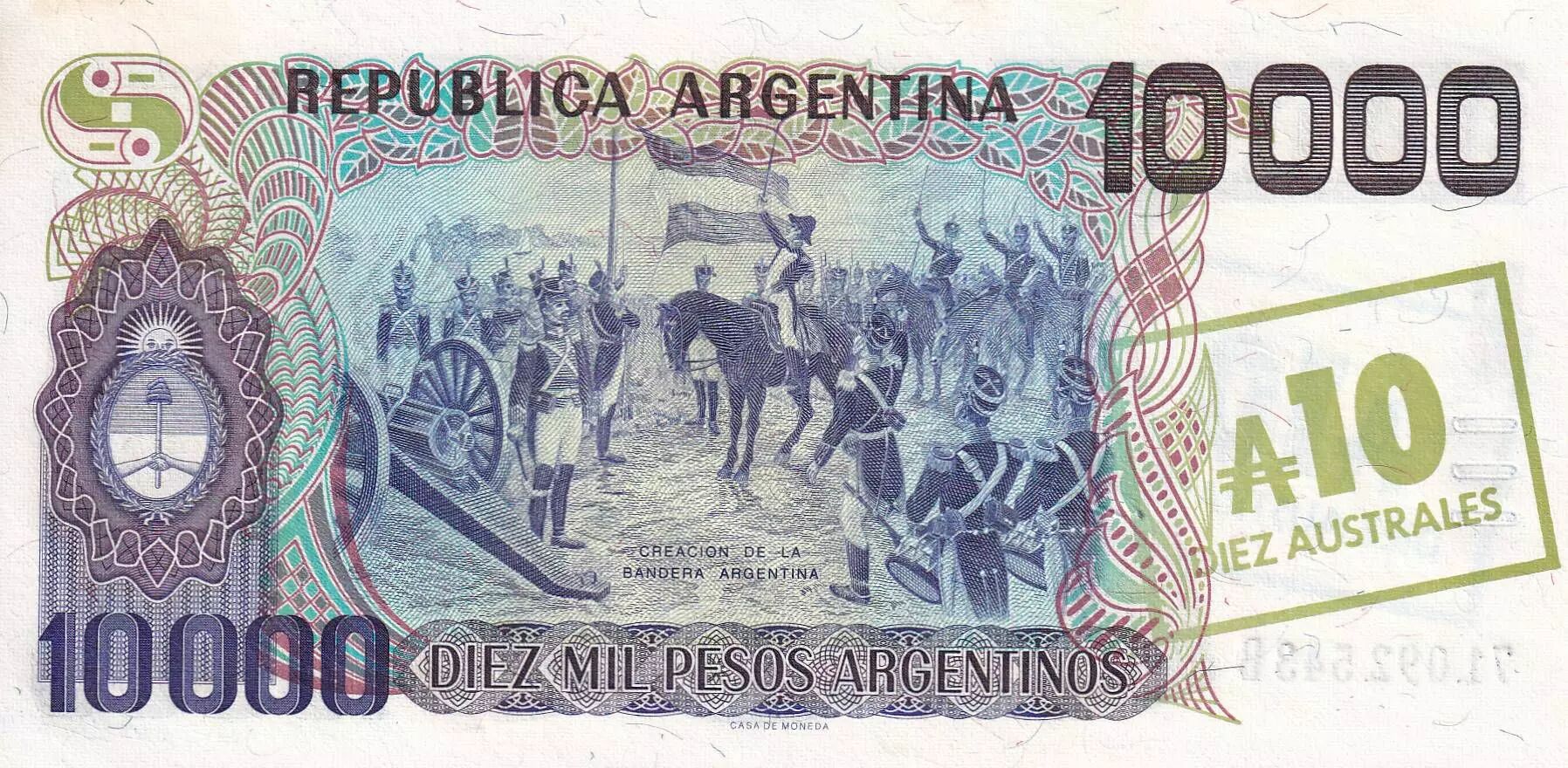 Billet Argentine 10 Australes -Manuel Belgrano - Drapeau argentin - 1985 - Lettre B - NEUF - P.322a