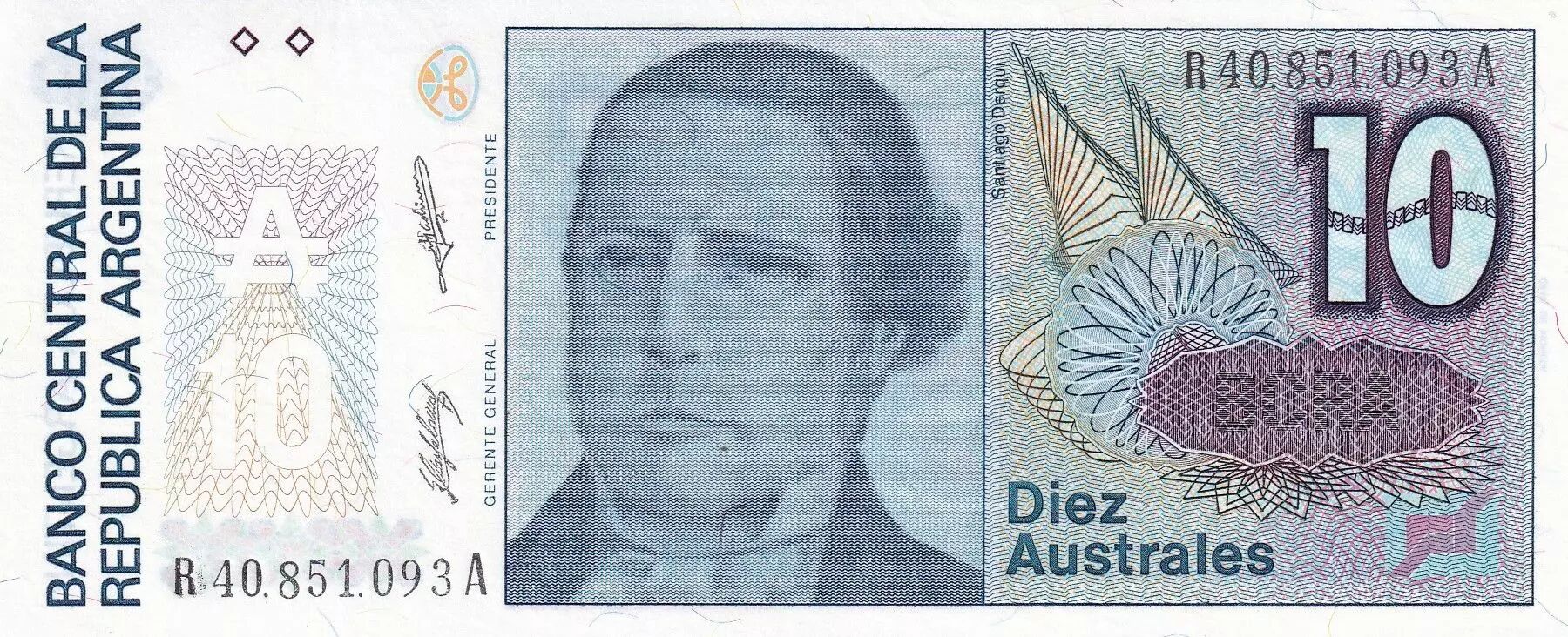 Billet Argentine 10 Australes - S. Derqui - ND(1985) - Remplacement - P.325r