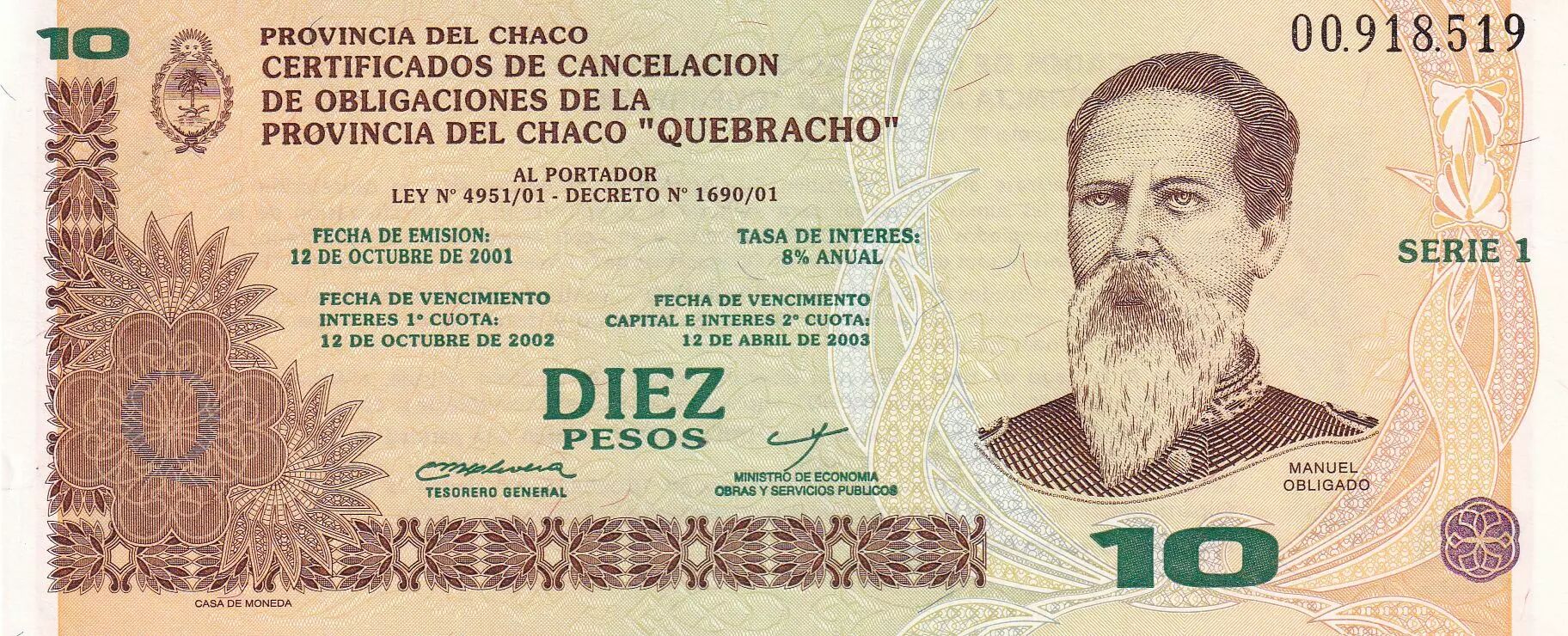 Accueil > Archivage > Argentine 10 Pesos - Manuel Obligado - Province du Chaco - 2003 - P.SNEW