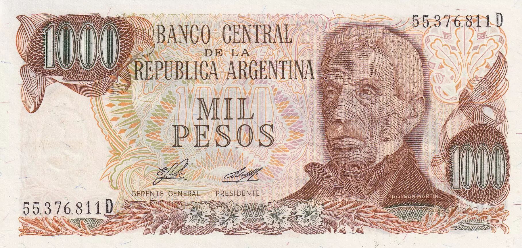 Accueil > Archivage > Argentine 1000 Pesos - Gen. San Martin - ND (1976-1983) - Série D - P.304b