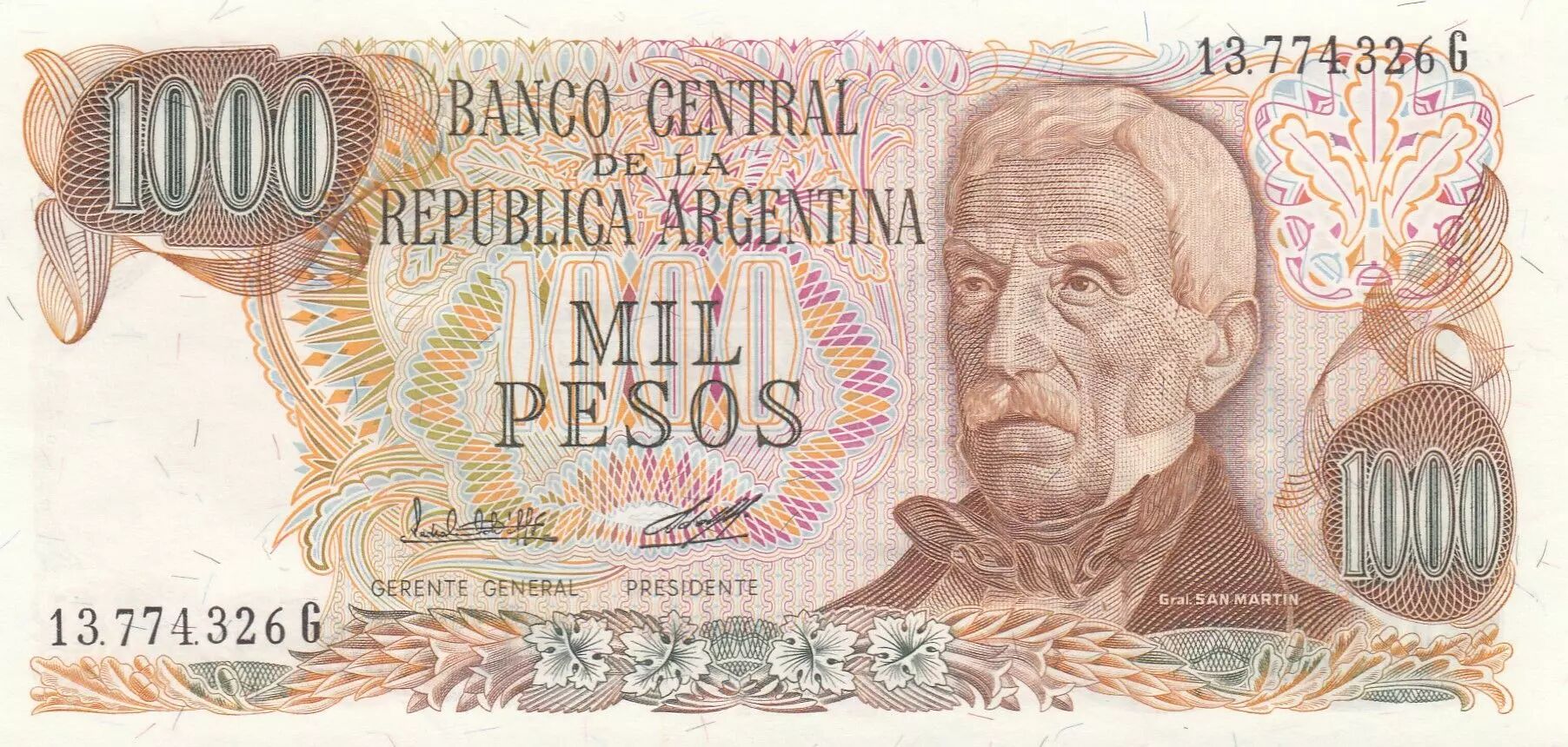 Accueil > Billets du Monde > Billets d'Amérique > Argentine > Argentine 1000 Pesos - Gen. San Martin - ND (1980) - Série G