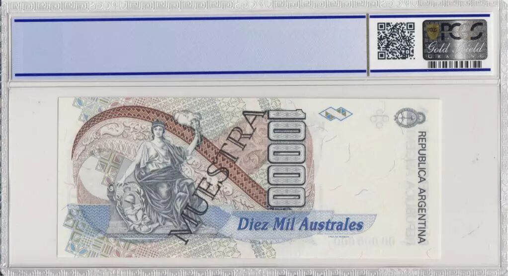 Accueil > Archivage > Argentine 10000 Australes , C Pellegrini - 1989 - Spécimen - PCGS 66 OPQ