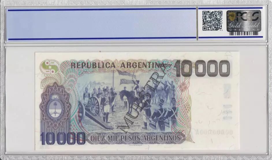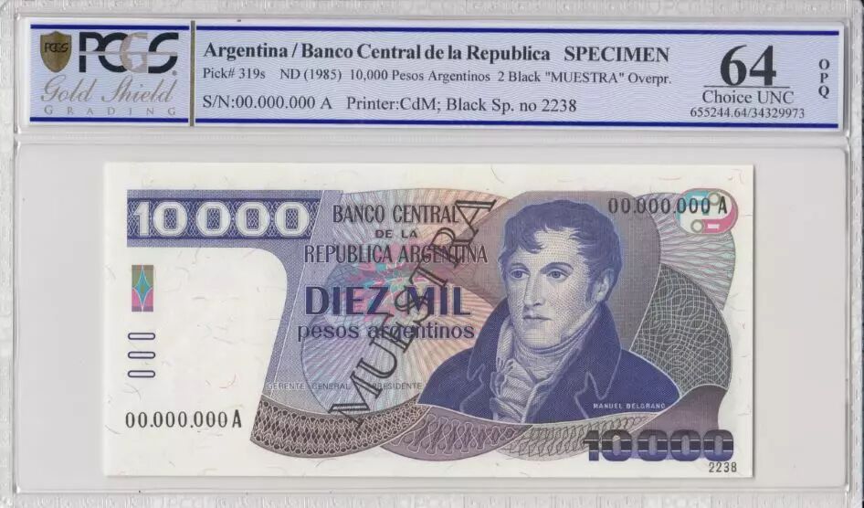Billet Argentine 10000 Pesos , M Belgrano - 1985 - Spécimen - PCGS 64 OPQ - P.319s