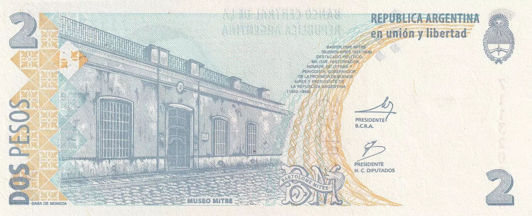 Billet Argentine 2 Pesos - Bartolome Mitre - Musée Mitre - ND 2002) - Série K - P.352