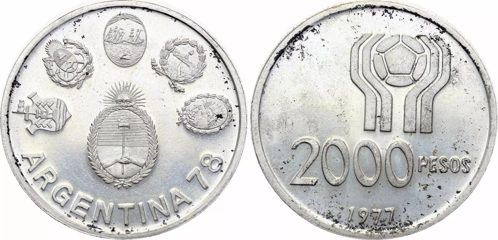 Pièce Argentine 2000 Pesos - Coupe du Monde de Football - 1977-1978 - Argent