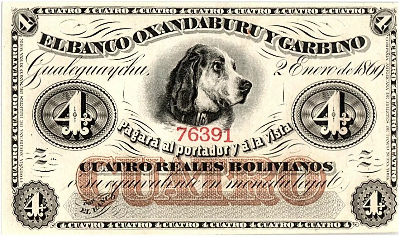 Billet Argentine 4 reales Bolivianos, Chien - 1869