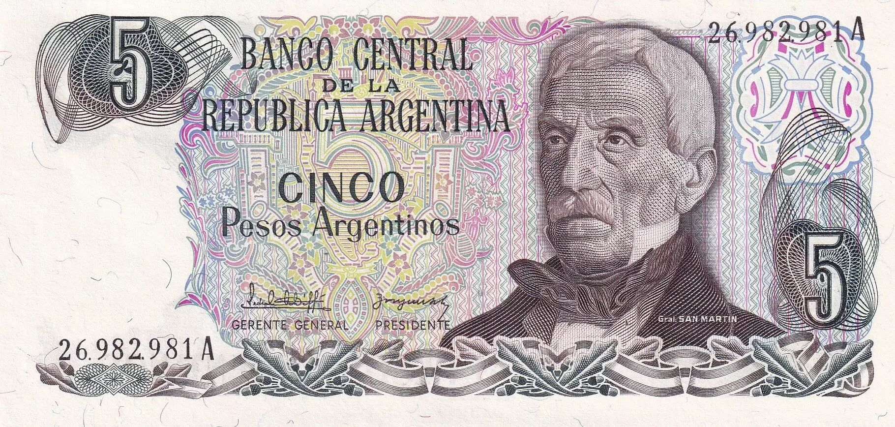 Accueil > Archivage > Argentine 5 Pesos - J. San Martin - Rosario - ND (1983) - Série A - P.312