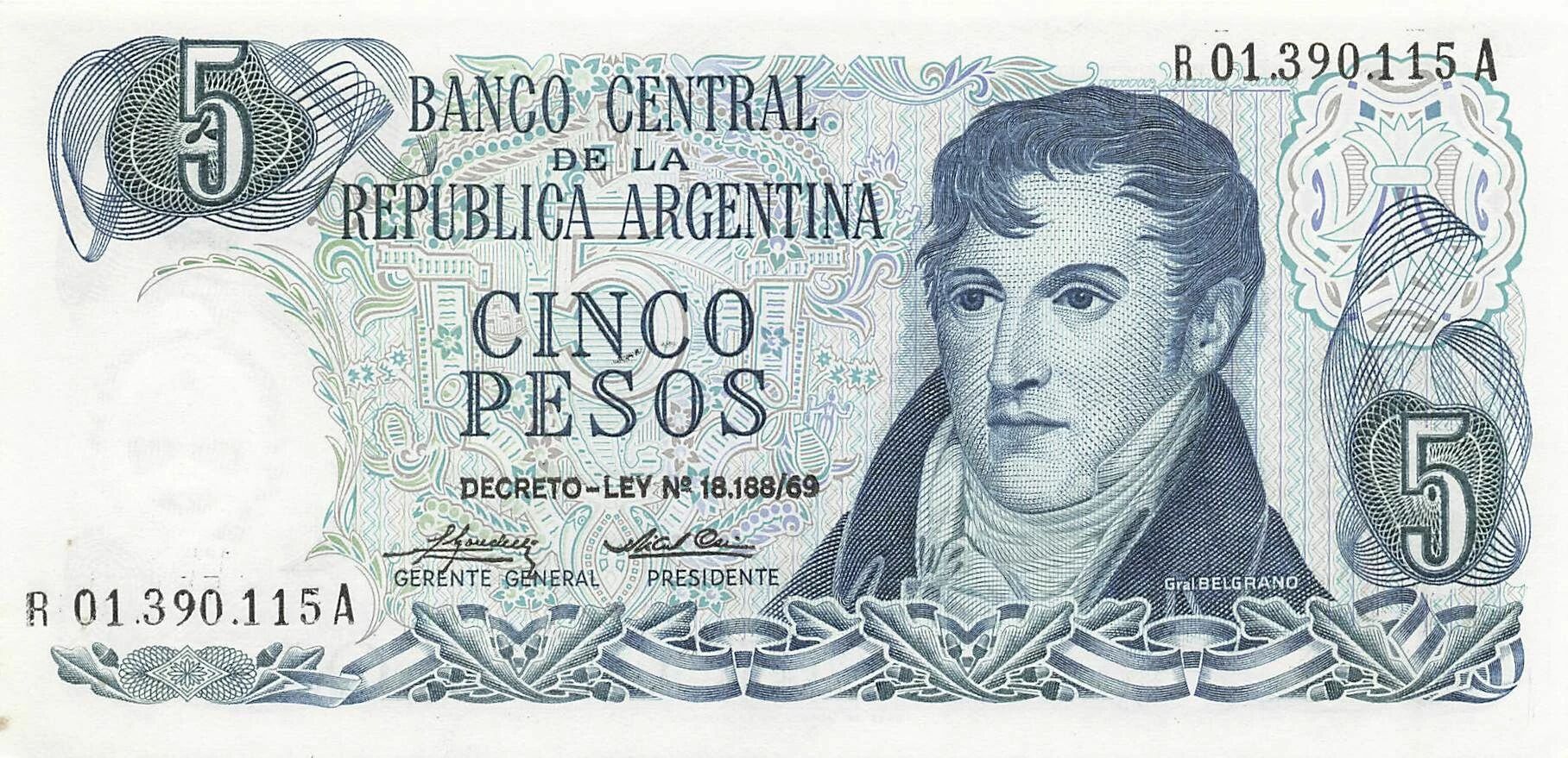 Billet Argentine 5 Pesos - ND (1974-76) - Remplacement - P.294