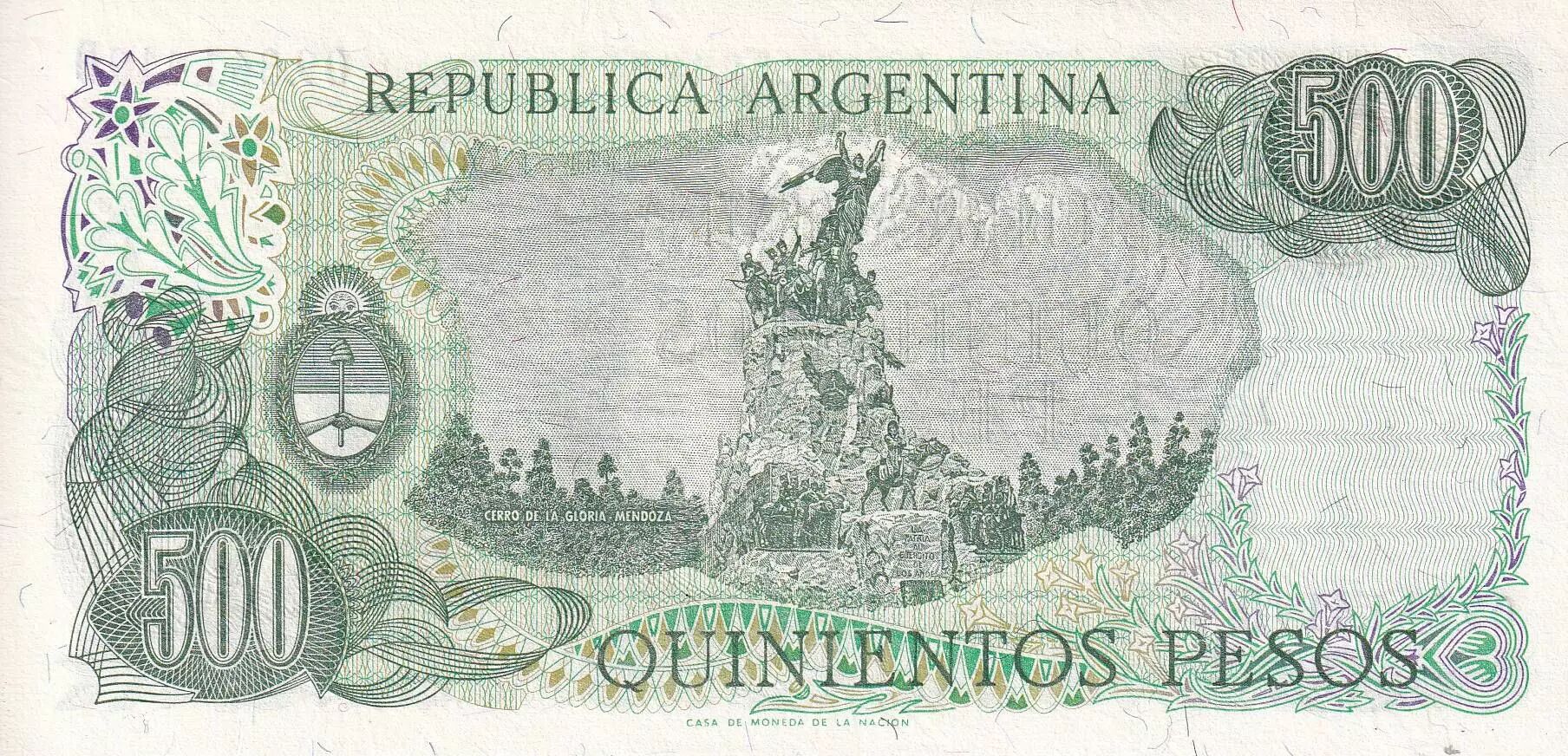 Accueil > Billets du Monde > Billets d'Amérique > Argentine > Argentine 500 Pesos - J. San Martin - Cerro de la Gloria Mendoza - 1977 - Lettre C - PNEUF - P.303c