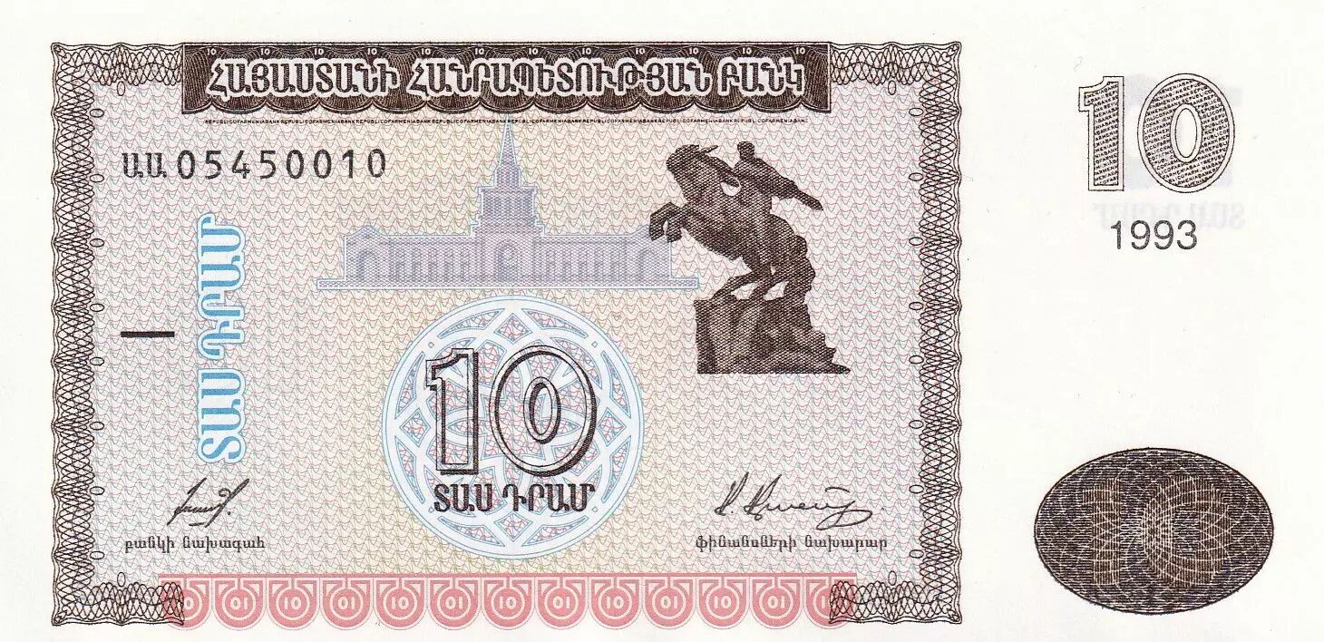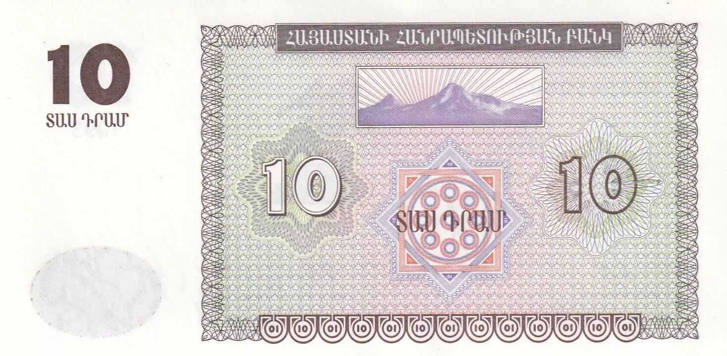 Banknote Armenia 10 Dram - Main railroad station building in Yerevan - 1993
