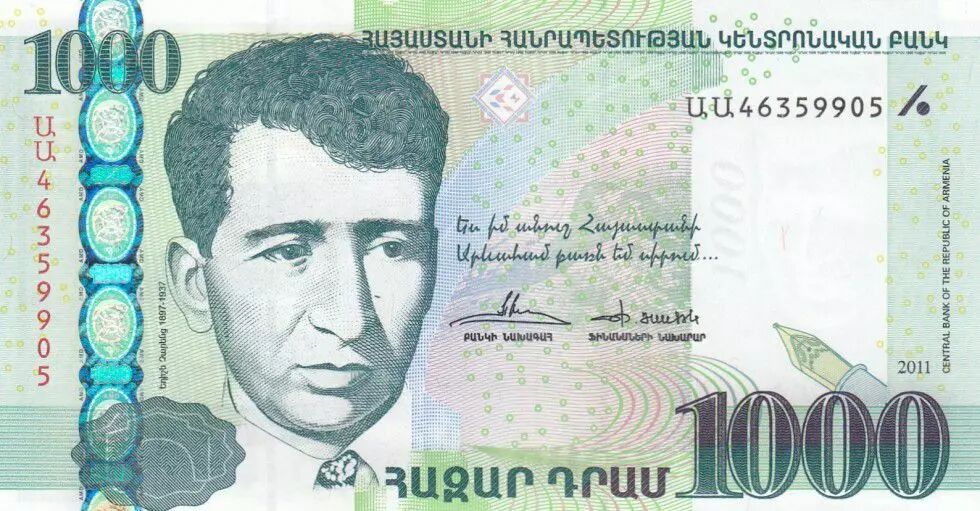 Home > > Armenia 1000 Dram Yeghishe Charents - Yerevan 2015