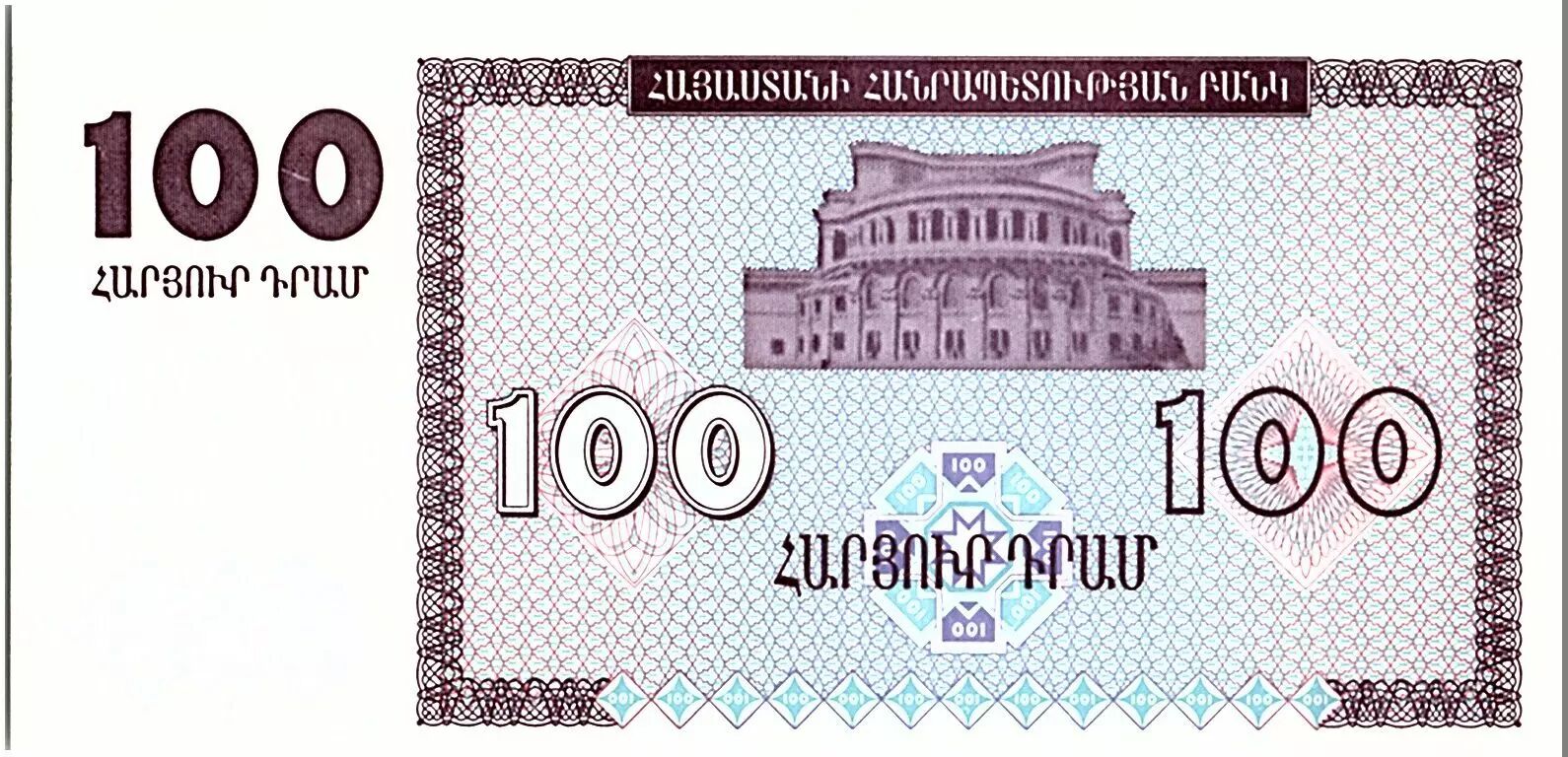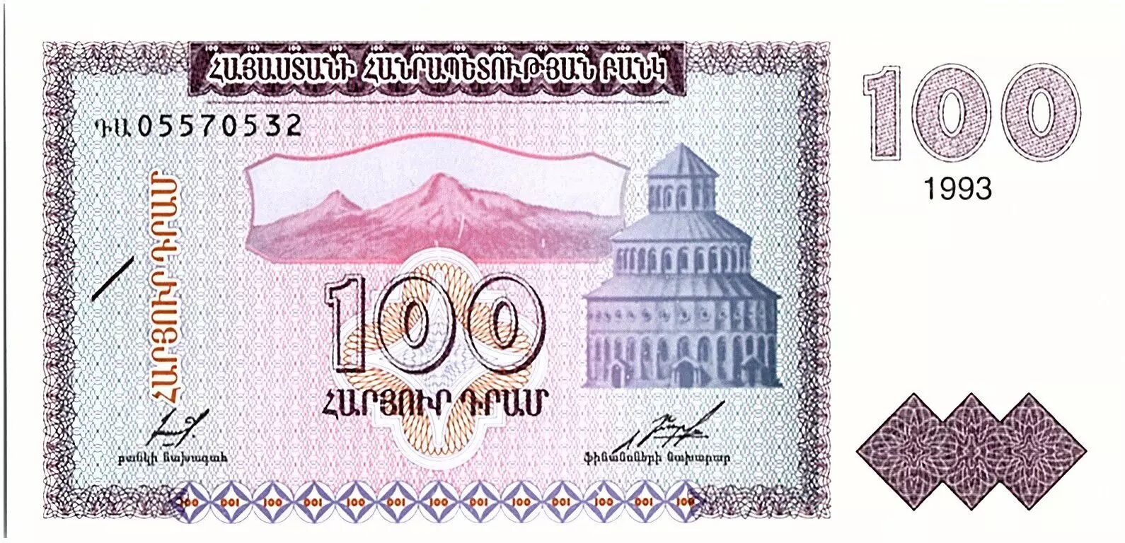 Billet Arménie 100 Dram, Mont Ararat - Eglise - 1993 - P.36 a