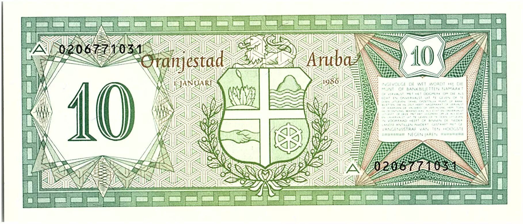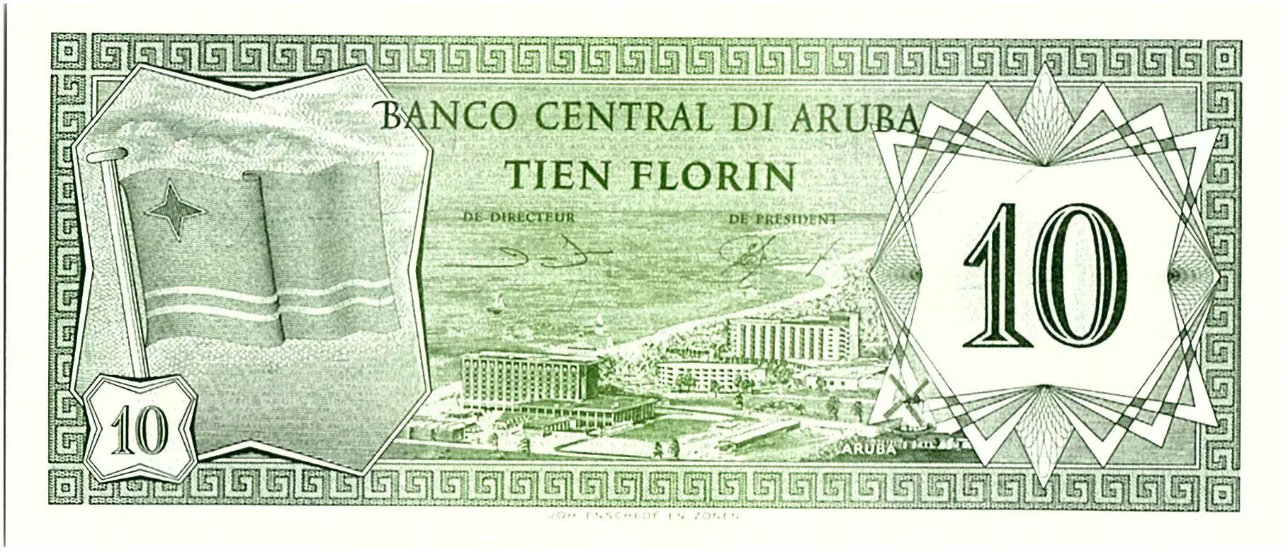 Banknote Aruba 10 Florin, Flag - Hotels - 1986