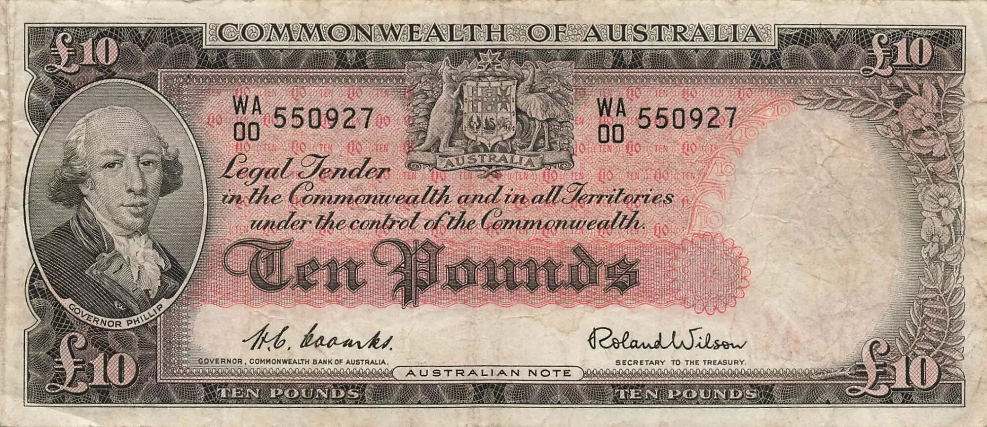 Home > World Banknotes > Oceania Banknotes > Australia > Australia 10 Pounds - Governor Phillip - ND (1954-1959) - P.32