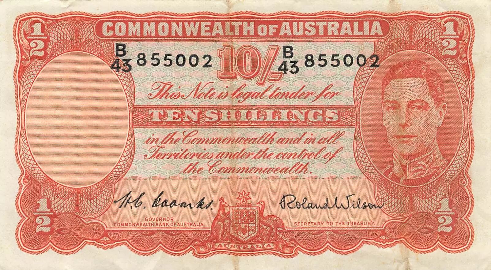 Home > World Banknotes > Oceania Banknotes > Australia > Australia 10 Shillings - George VI - Workers - ND (1939-1941) - P.25d