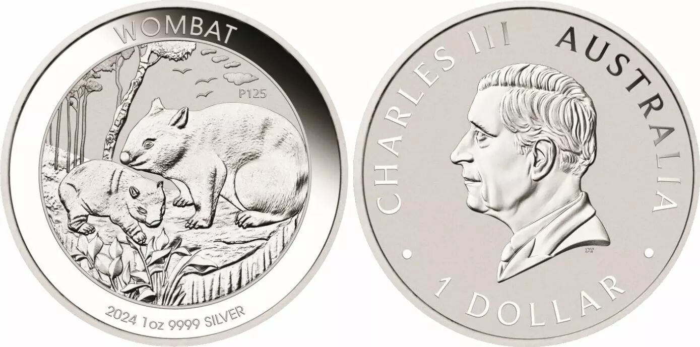 Pièce Australie 1 Dollar Charles III - Wombat 1 Oz 2024