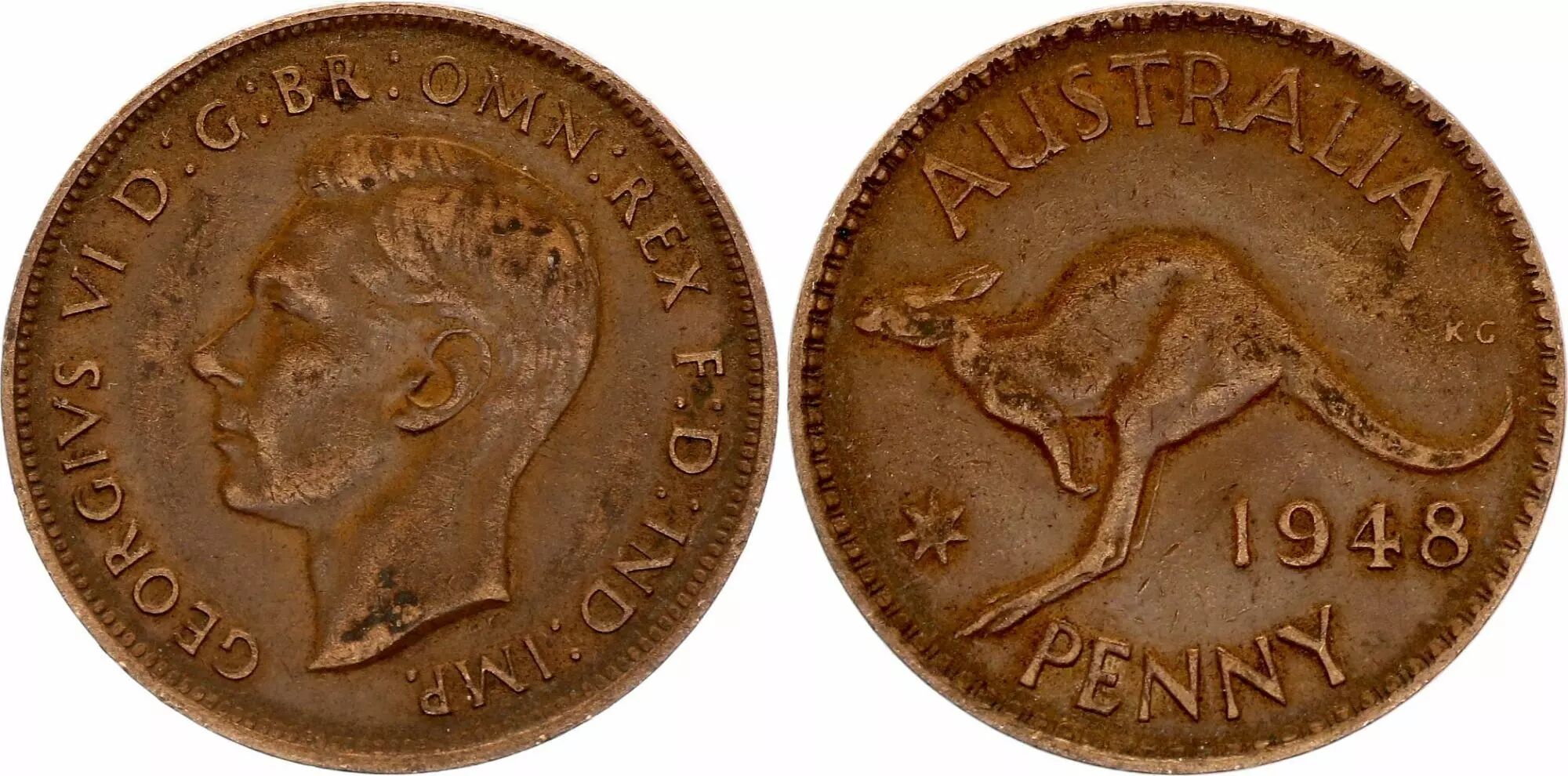 Pièce Australie 1 Penny - George VI - Kangourou - Années variées 1938-1948