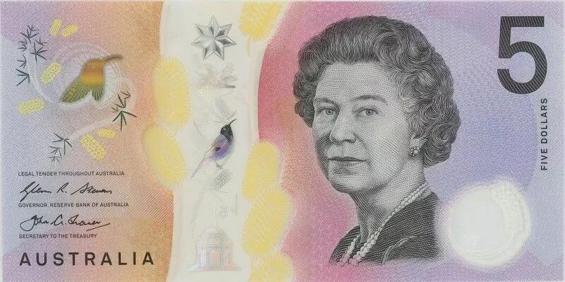 Le billet de 5 dollars australiens émis en 2016 est en polymère, intégrant des éléments de sécurité modernes et un design distinctif. Il mesure 130 mm de longueur et 65 mm de largeur.