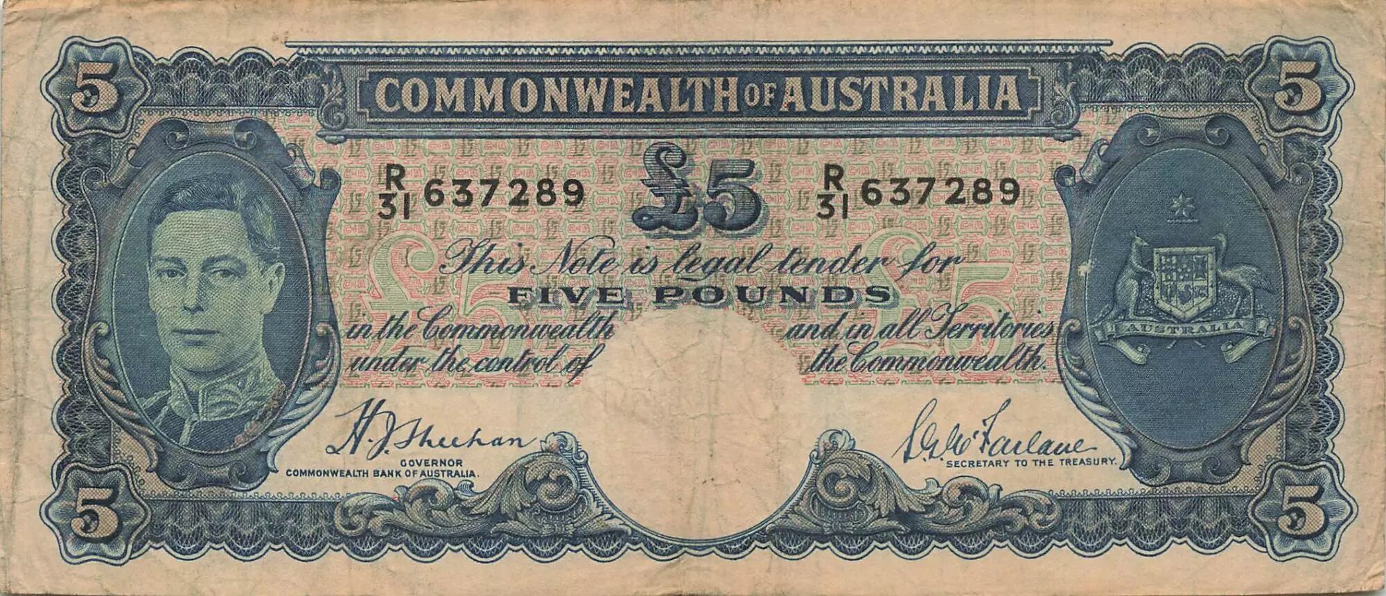 Accueil > Billets du Monde > Billets d'Océanie > Australie > Australie 5 Pounds - George VI - ND (1939) - P.27a