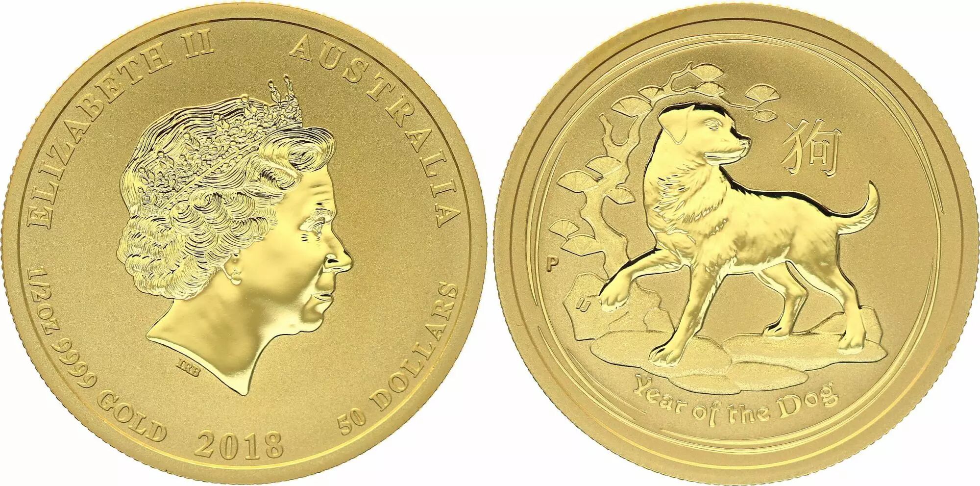 Pièce Australie 50 Dollars Elisabeth II - Chien 1/2 Once Or 2018