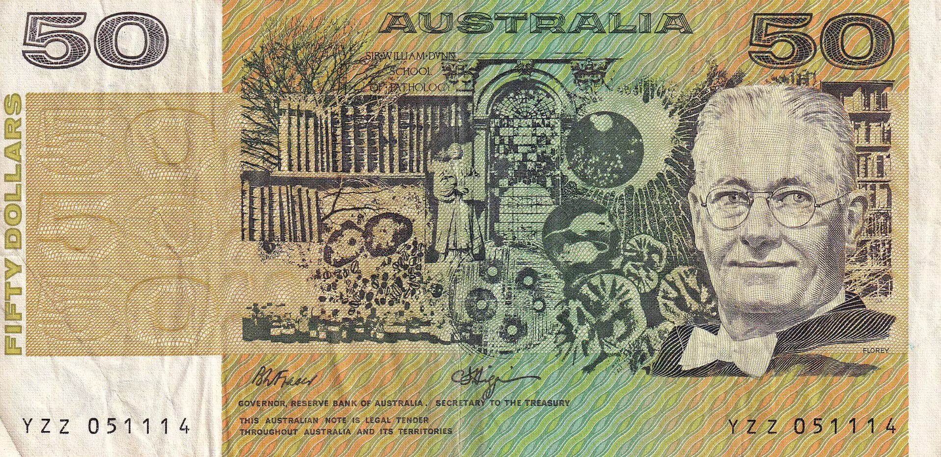 Billet Australie 50 Dollars - Howard W. Florey - Ian Clunies-Ross - 1989 - TB - P.47g