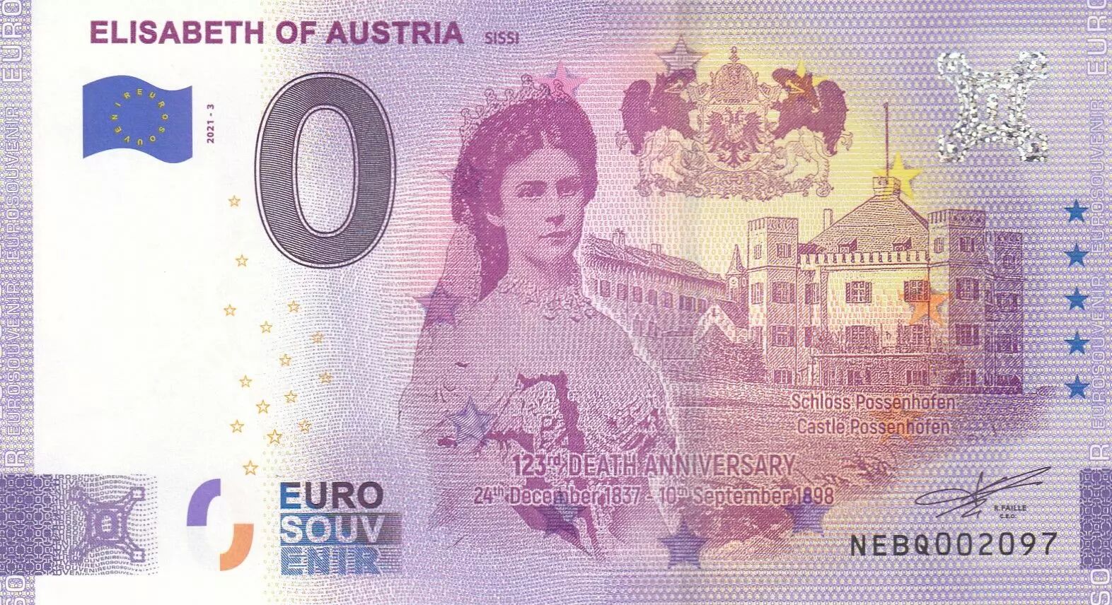 France 0 Euro Souvenir Banknote - Elisabeth of austria - 2021 Size : 133 X 72 mmUnique numbering