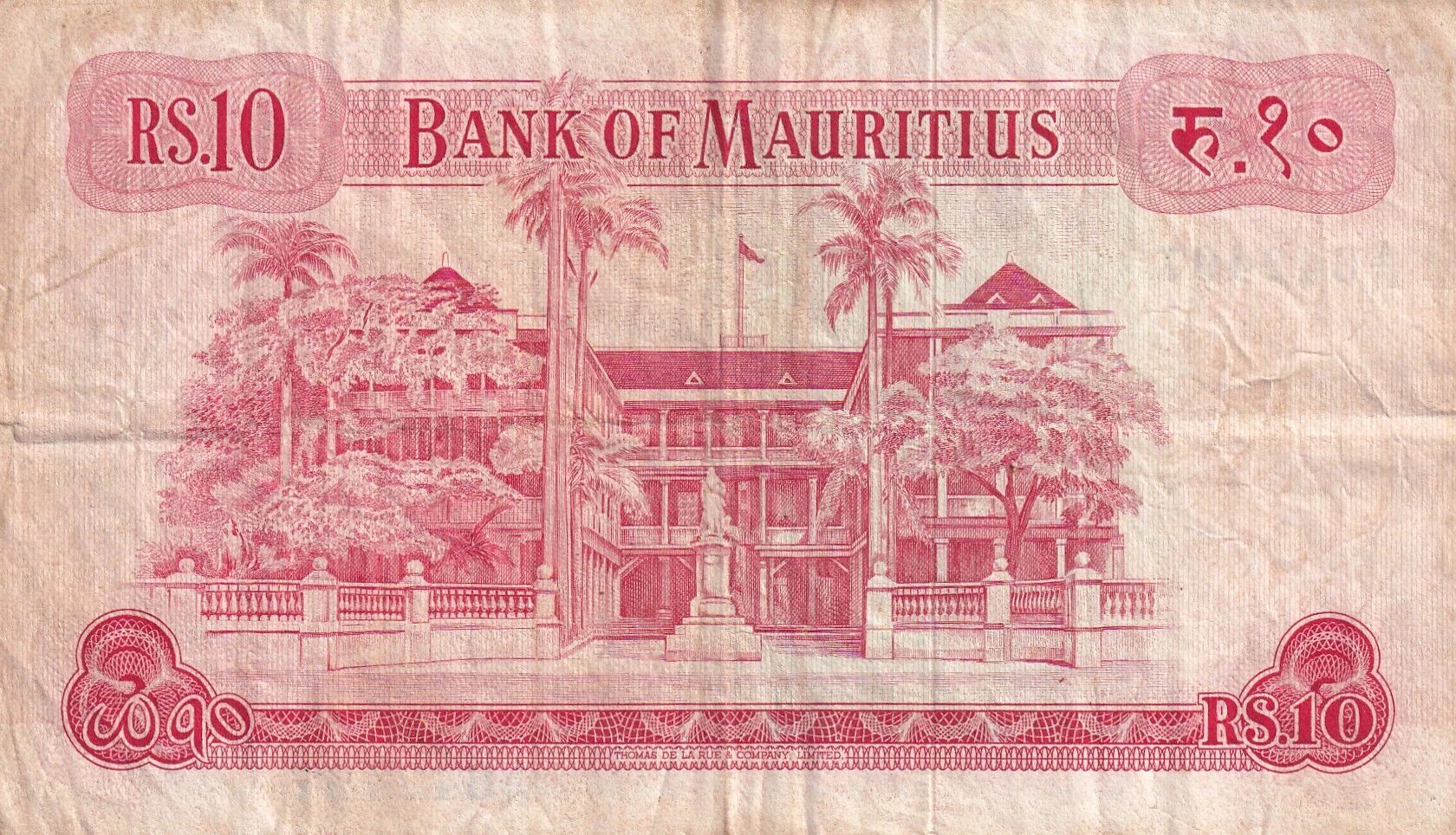The reverse of the banknote features a representation of the Mauritian government building. This building is a symbol of the island's administration and governance. Its inclusion highlights Mauritius' national identity and its political system.