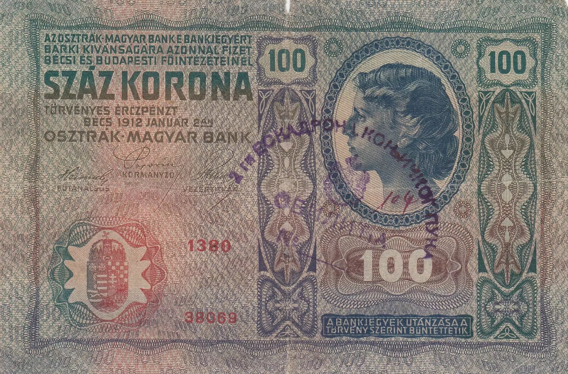 Home > > Austria 100 Kronen 1912 - Overprint with purple stamp