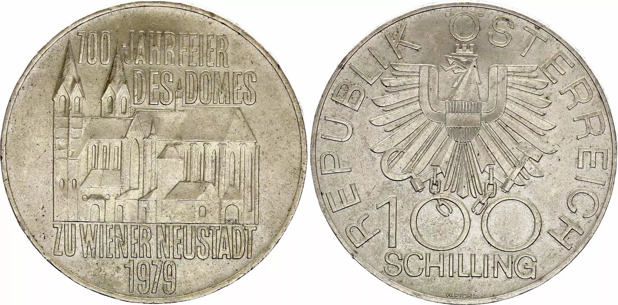 Coin Austria 100 schilling, 700 e Anniversary of Wien Cathedral - 1979