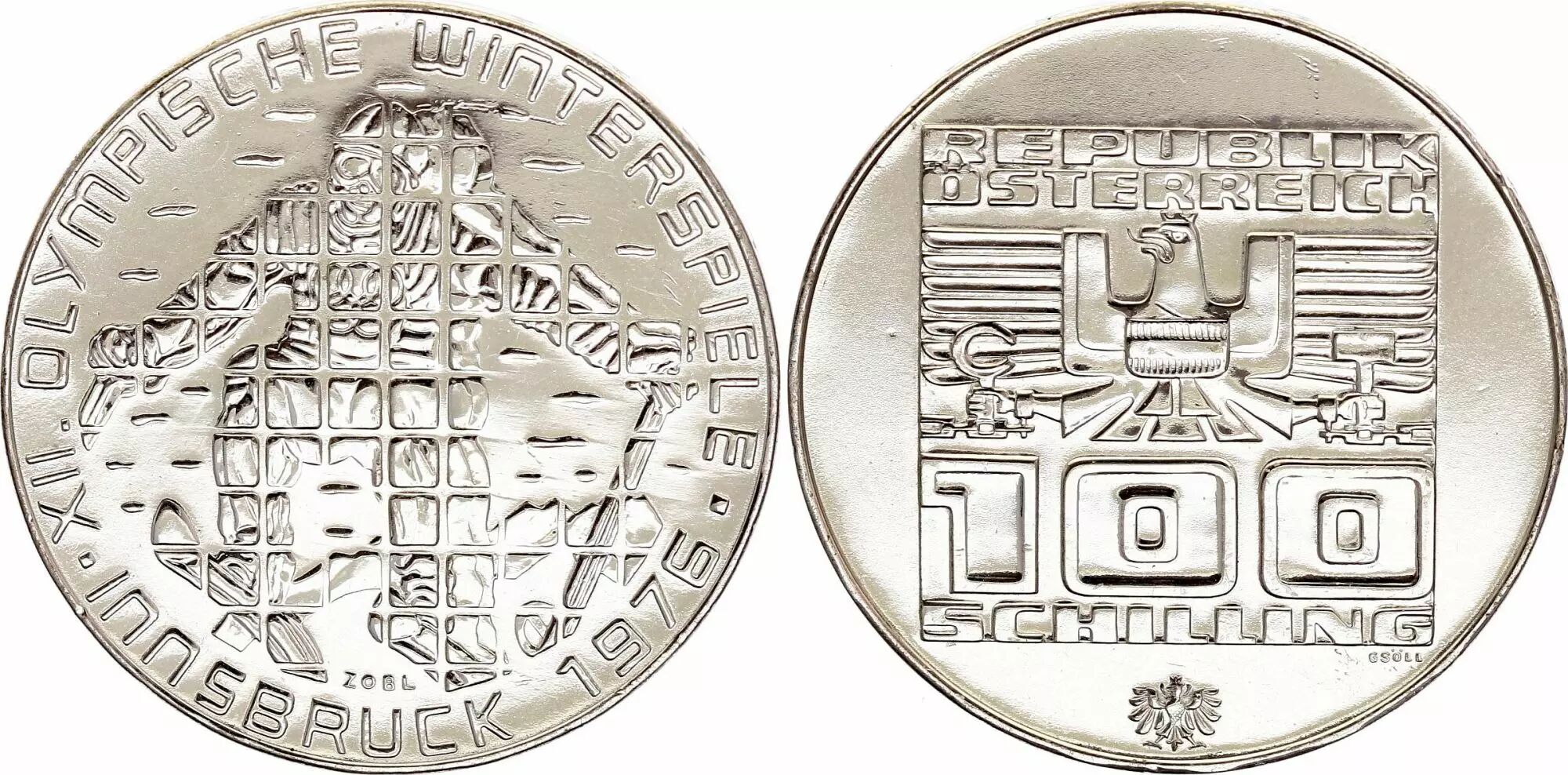 Coin Austria 100 schilling, Innsbruck Olympics games - 1975