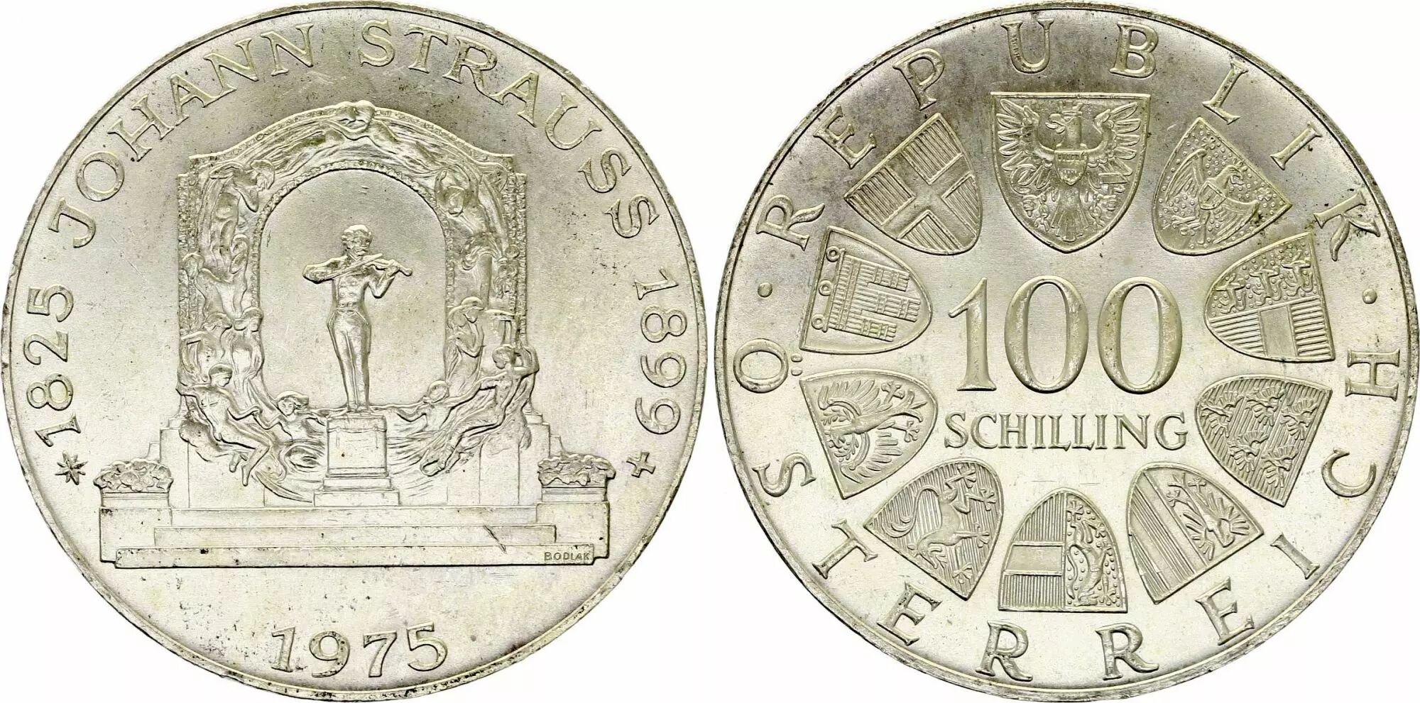 Coin Austria 100 shilling, Johann Strauss - 1975