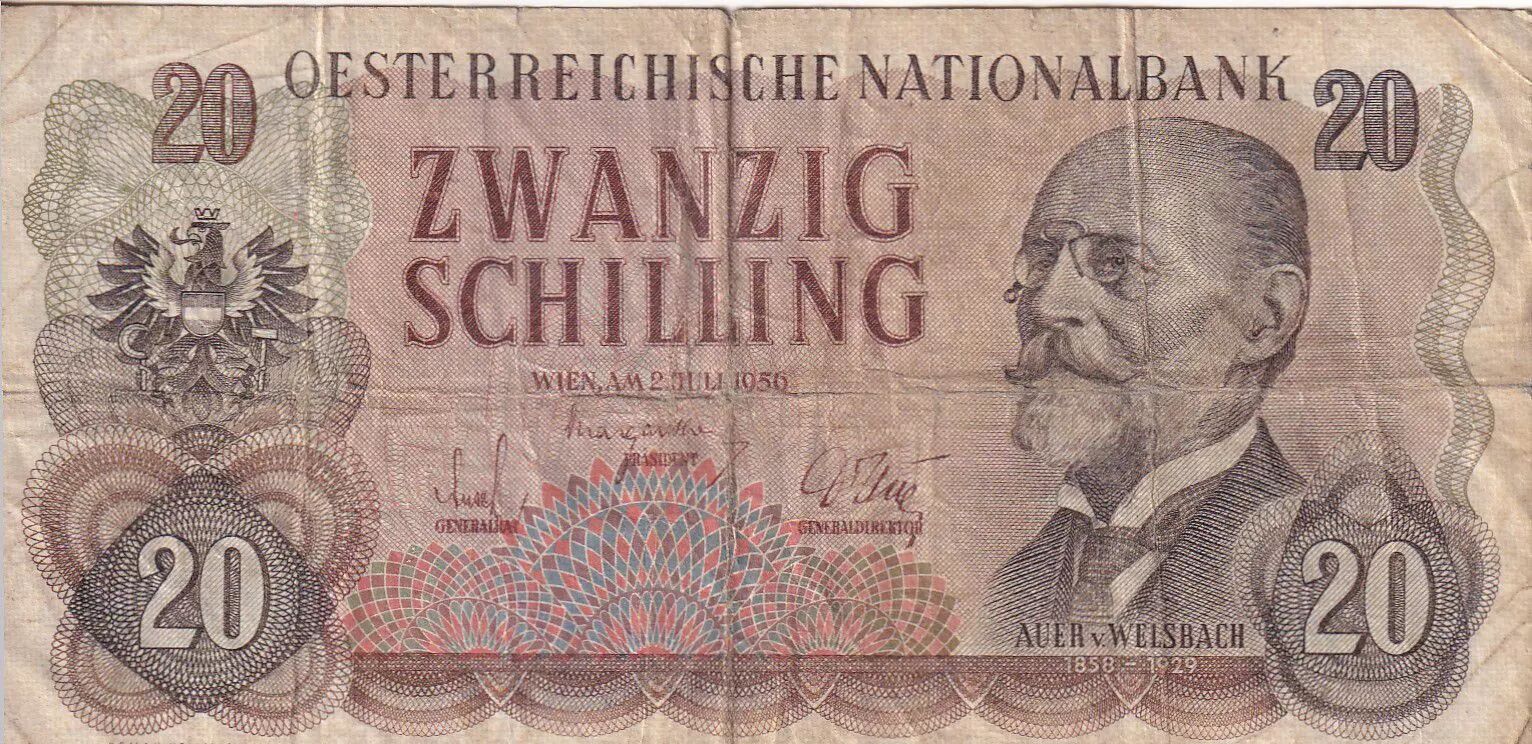 Home > > Austria 20 Schilling - Auer v. Welsbach - Landscape - 1956 - Serial EK - P.136