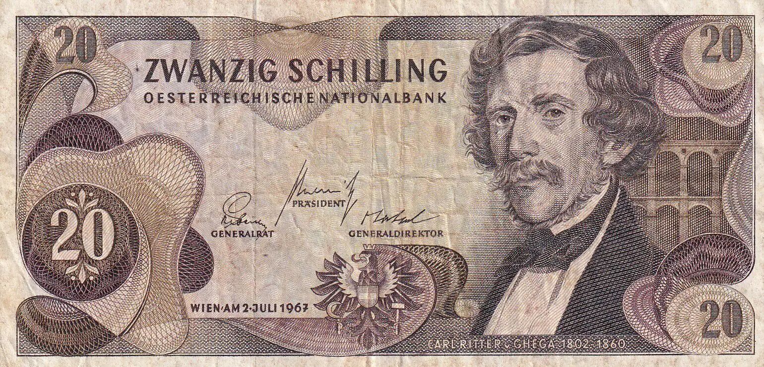 Banknote Austria 20 Schilling - Carl Ritter - 1967 - Serial S - P.142
