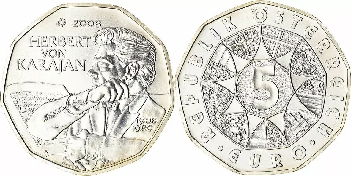 Home > Euro Coins (since 1999) > Austria > Austria 5 Euro - Karajan - 2008 - Silver