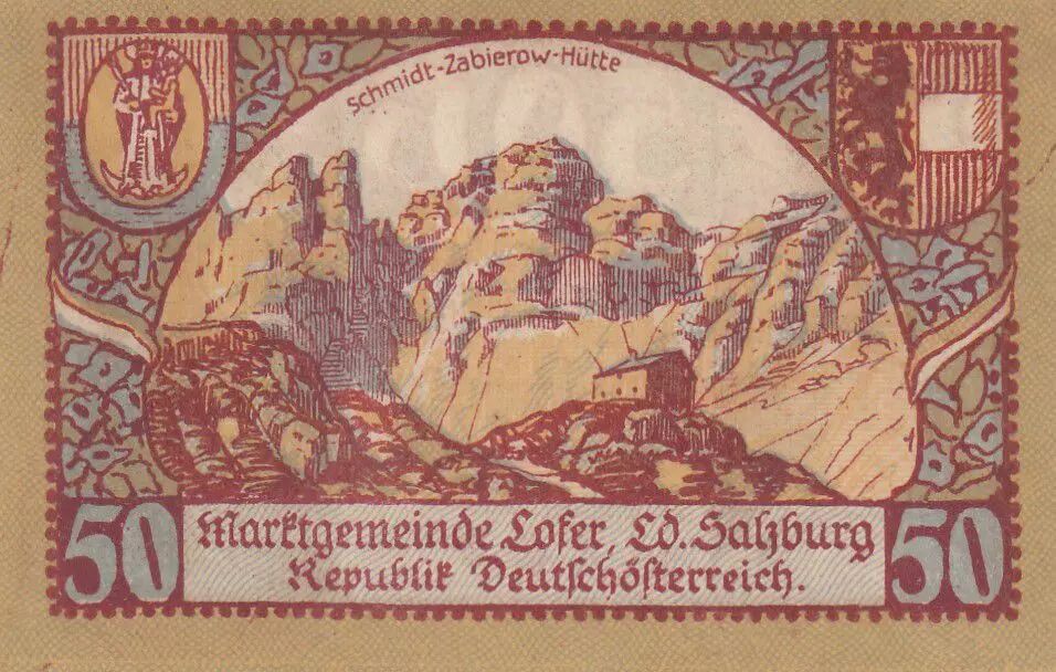 Banknote Austria 50 Heller 1921 - Mountain view - City of Lofer