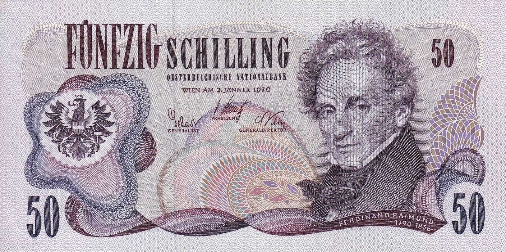 Banknote Austria 50 Schilling - Ferdinand Raimund - 1970 - Serial C - P.144