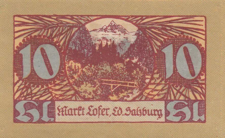Billet Autriche 10 Heller 1921 - Armoiries - Ville de Lofer, notgeld 2nd type